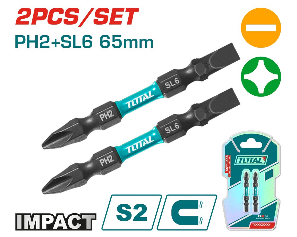 PH2 + SL6 عادة و صليبة بطول 65 مم – عدد 2 قطعة في الطقم