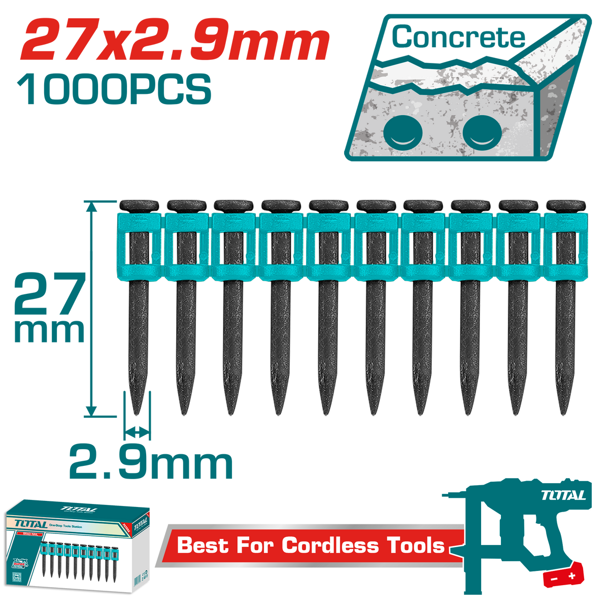 علبه مسمار للدباسه تثبيت للخرسانة 1000 مسمار 27 مم – TAC02271